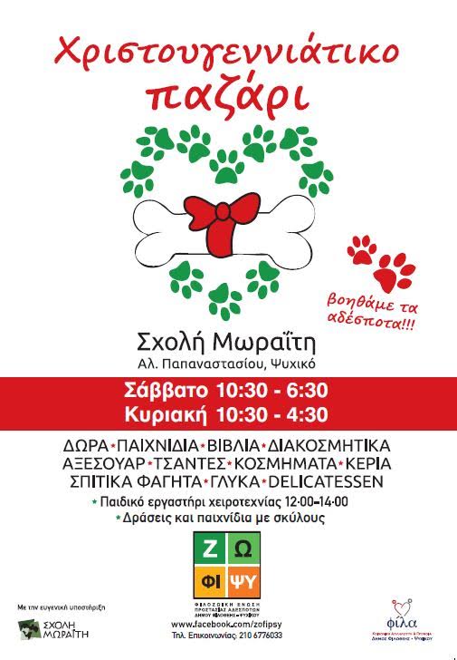 Σας περιμένουμε στο Χριστουγιεννιάτικο Παζάρι 26 & 27 Νοεμβρίου στη σχολή Μωραίτη.